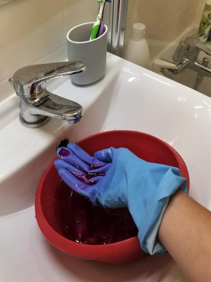 - Użyj rękawiczek, aby uniknąć zabarwienia rąk.