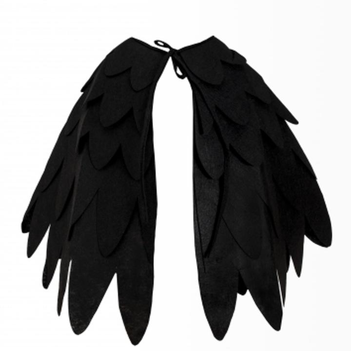 Akcesoria Maska czarnego ptaka, czapka filcowa wrony, sztuczne pióra do fryzury, biżuteria w odcieni czerni i granatu, brokat i błyszczące dodatki do makijażu.