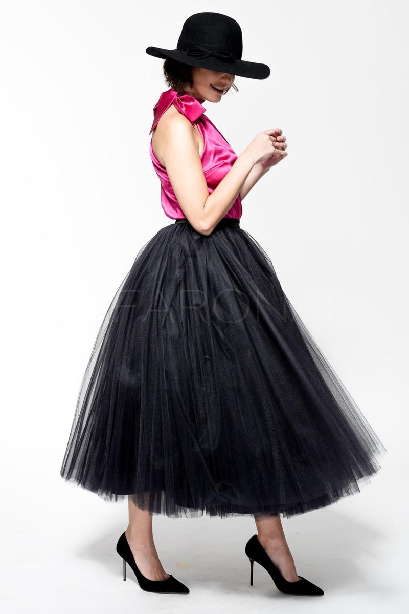Ciekawostką jest, że tiul, z którego wykonane są spódnice, ma swoje korzenie w balecie i poprzednio był używany do tworzenia baletowych kostiumów, co sprawia, że każda stylizacja z tiulową spódnicą emanuje charakterem oraz lekkością rodem z sceny tanecznej.