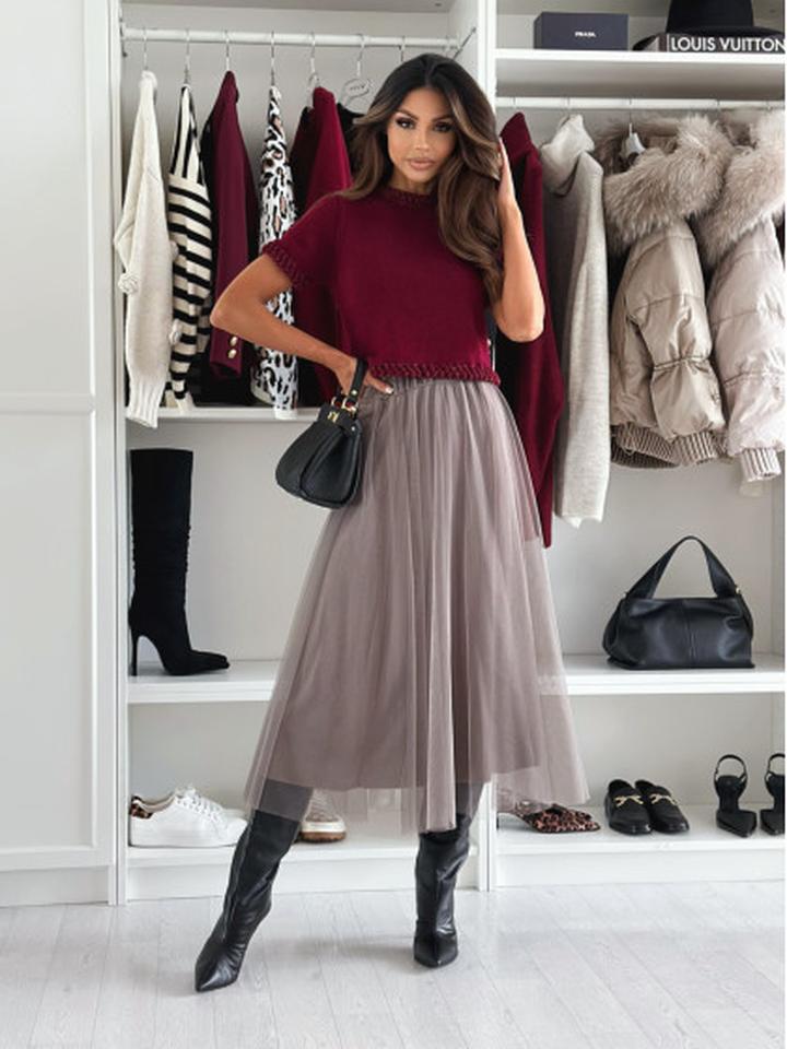 - Tiulowa spódnica sprawdza się w codziennych stylizacjach, łącząc się z casualowymi elementami.